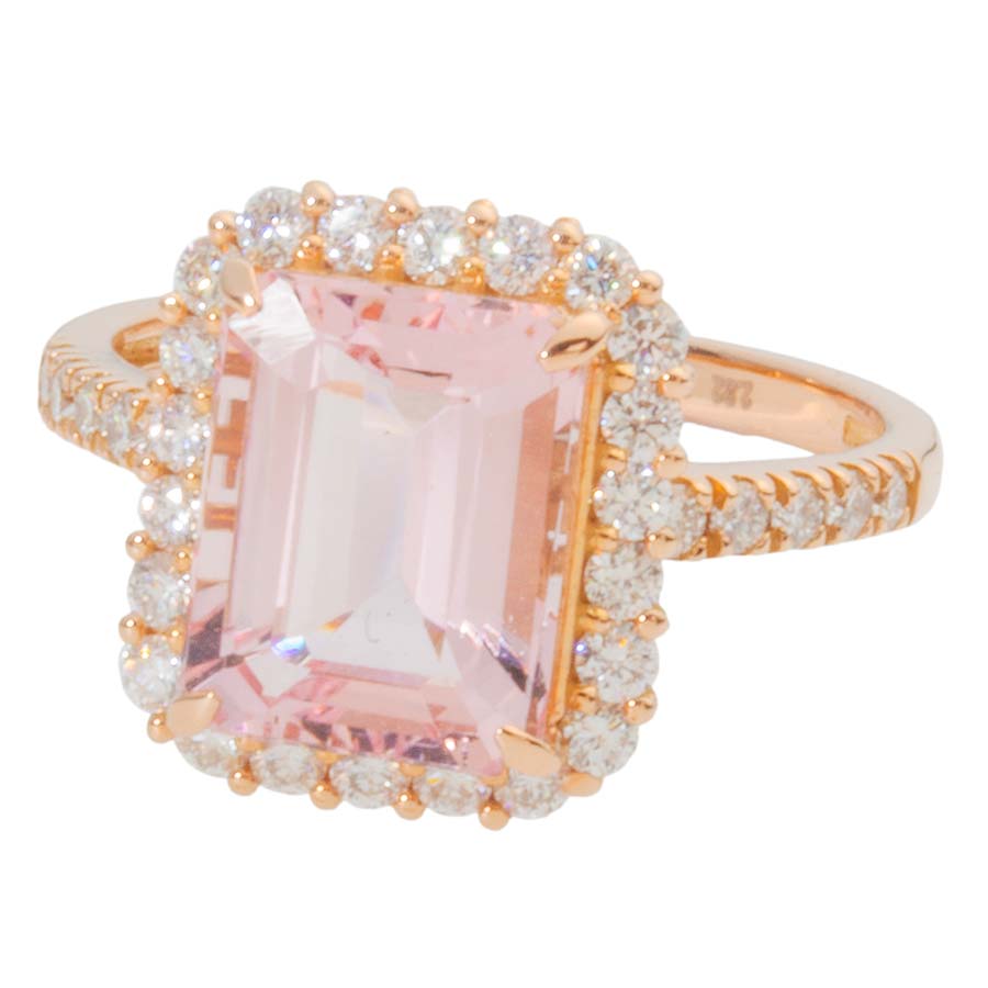 センターに咲くのは、可憐なモルガナイト2.820ct。優しいピンクの煌めきを、トータル0.550ctのダイヤモンドが華やかに引き立てます。指元に咲く一輪の花のように、上品でありながらも存在感たっぷり。永遠の愛や幸福を象徴するモルガナイトと、永遠の輝きを誇るダイヤモンドの共演を、ぜひあなたの手元に。