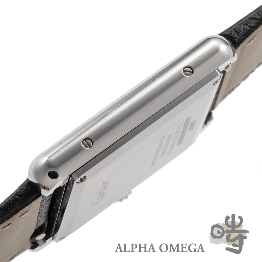 こちらは2022年に発売されたタンクマストです。「タンクルイカルティエ」のケースデザインの最適化をしており、今まで2分割されていたケースのデザインコードをそのままにケースと裏蓋に分けました。ケースに厚みを持たせメンテナンス性と耐久性を向上させています。ストラップもクリッカー仕様になっています。最初はスチールに合うようにカジュアルなレザーストラップで販売されていますが、カルティエでストラップを買い足せば、ドレッシーなアリゲーターストラップに簡単に交換出来ます。