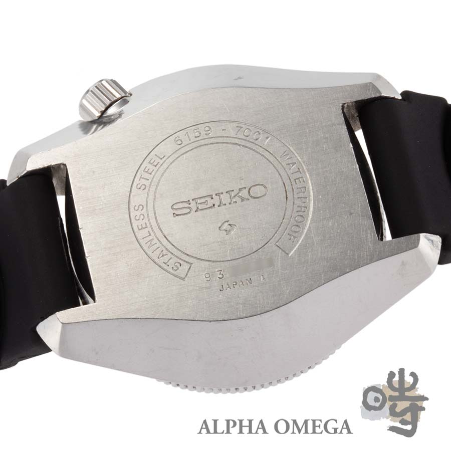 6159-7001は製造期間が約1年と短期間のみ製造されました。61ダイバーには6159-7000と6159-7001の2種類が存在いますが1説によると6159-7000が日本市場向け、6159-7001が海外モデルなのではとも言われています。また当時はメーカー修理の際にカウントアップベゼルかカウントダウンベゼルを選ぶことが出来ました。