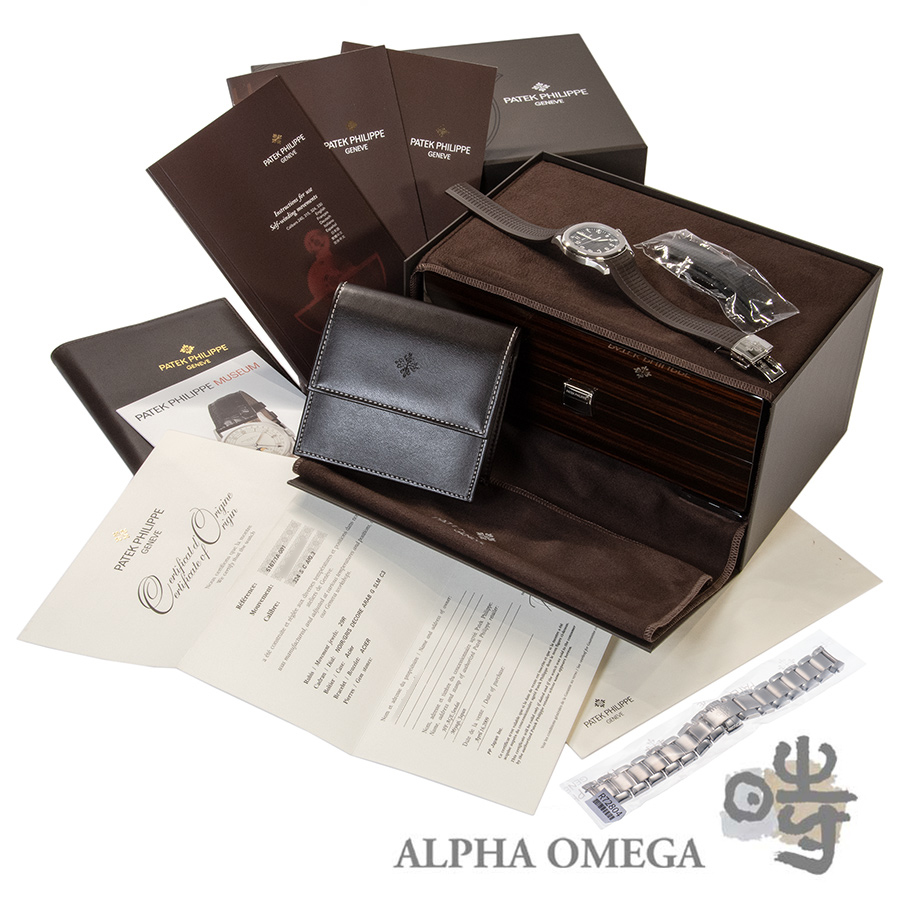 ムーブメントは2009年まで押されたジュネーブシールの頃のもので、パテックフィリップもスイスの時計メーカーの一員であるという歴史を感じることが出来ます。希少な販売当時のブレスレットと綺麗な箱と保証書が付き、後から購入したバックル、二種類のトロピカルバンド、携帯用ケースも付くフルセットになります。早いもので発表から約20年が経ち、初期に存在したブラウンを帯びた文字盤がさらに濃くなった、次のヴィンテージとして注目度の高いパテックフィリップでは珍しいトロピカル文字盤です。ぜひ、ヴィンテージの集まりに着けて行ってください。