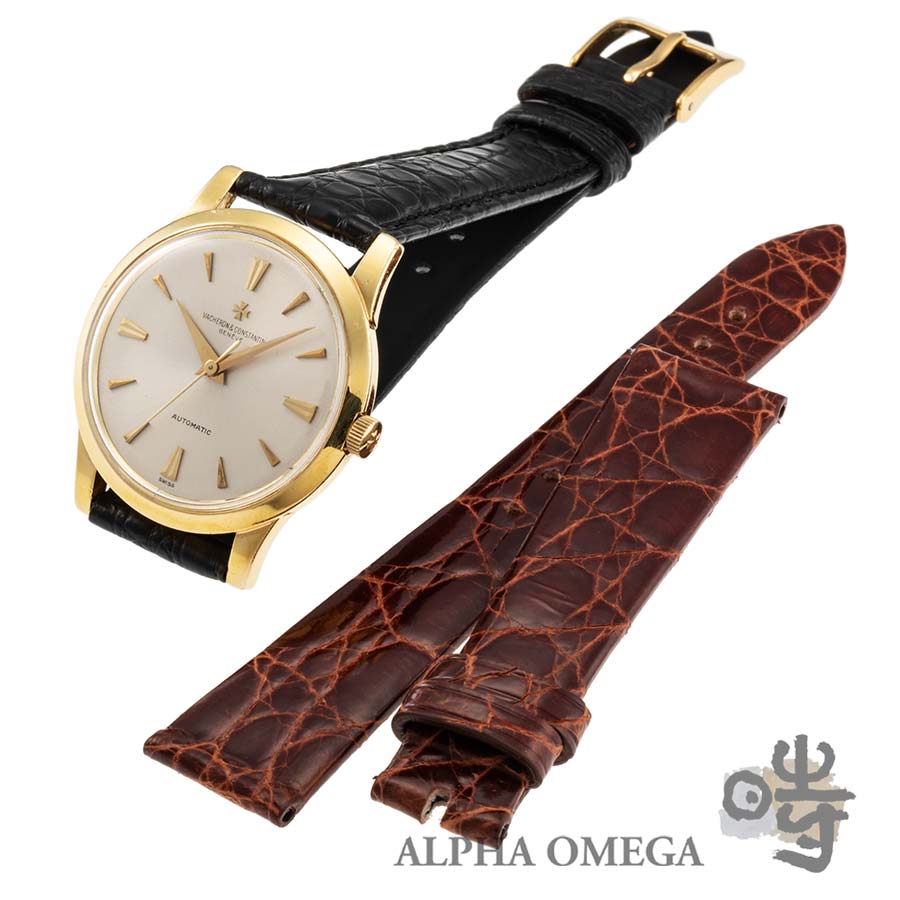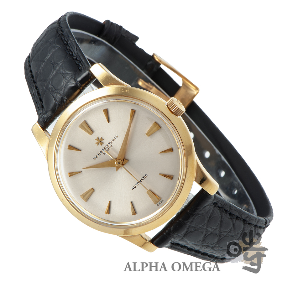 こちらは機械式時計のピークと言われる1960年代のRef.6378です。当時としては比較的大きめな35mmケースを採用しています。ドーフィンバリに楔型インデックスはドレスウォッチの中でもヴィンテージとしての温かみがあるダイアルです。ムーブメントはルクルトベースのCal.1072が搭載されています。オーデマ・ピゲとヴァシュロン・コンスタンタンのために特注で製造されたムーブメントで、18金のローターにはギョウシェが施されており、普段は見えない細部にもこだわりが見られます。針の造形には力を入れており、先端などは刃物と見間違えるほどに整えられています。ハカマに近づくにつれ重厚感のあるドーフィン針は必見です。ケースに摩耗感はございますが自然な感じで、文字盤は良好な状態を保っています。地板の経年変化もあまり見られず、針も腐食などは見受けられません。 雰囲気の合うカシス製アリゲーターベルトを装着しておりあす。従来のものとは異なり裏面がラバー使用となっていますので、汗ばむ季節を含めて通年でお使いいただけます。1960年代の文字盤はエイジングが進んでるものが多いですが当時の状態を保ったお勧めの1本です。(文:S)