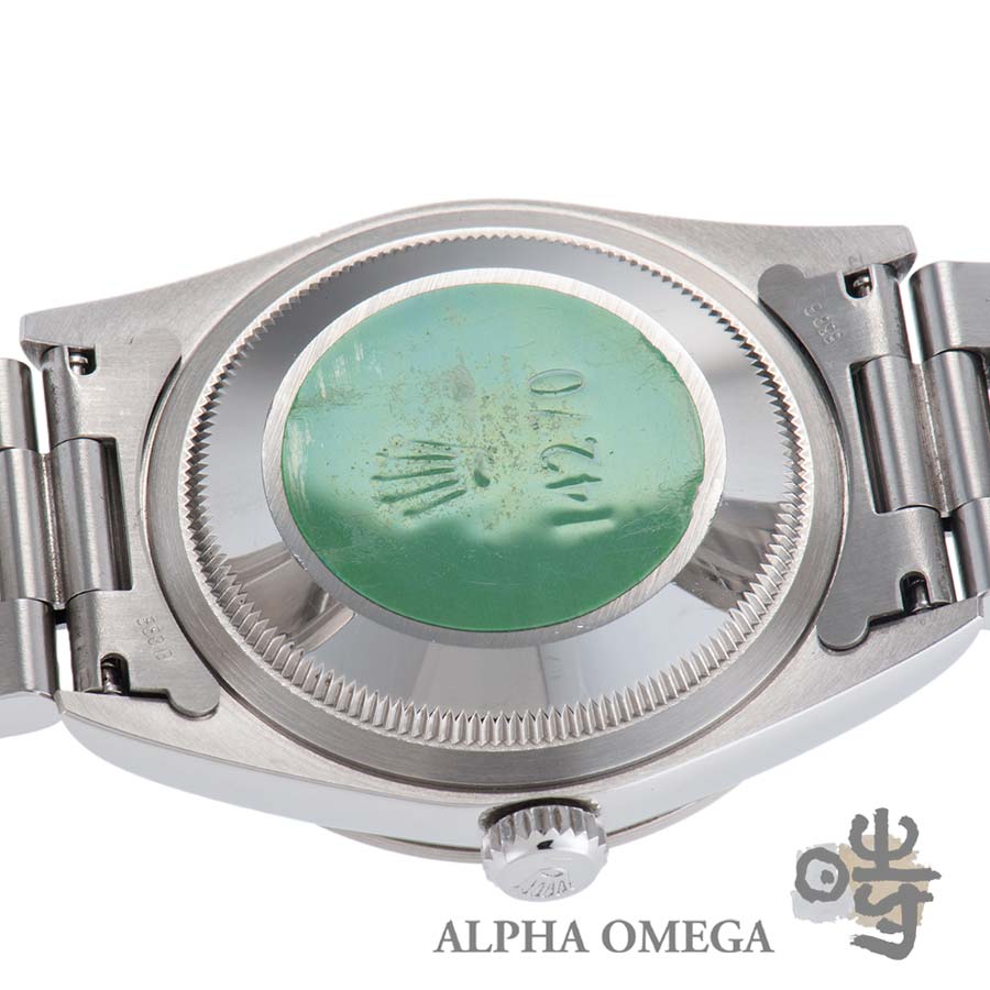 さらにこちらは裏蓋シール付きの未研磨の個体になります。オンリースイスダイアルでシール付き未研磨の個体はかなり少ないと思います。ケースは使用に伴う小キズがございますが、裏蓋やブレスは気になる傷は見受けられません。ブレスのヨレなども見られず、大事にご使用されていた個体だと思います。箱、保証書、冊子の年代までしっかりと揃ったオススメの個体です。(文:S)