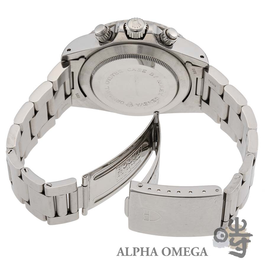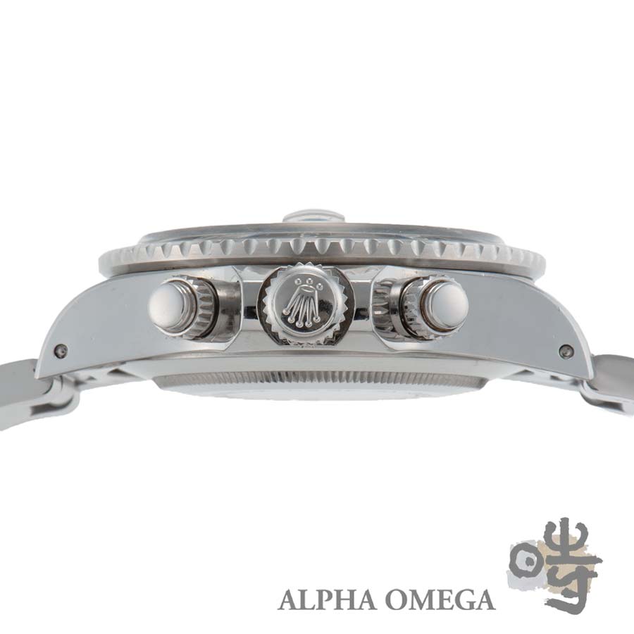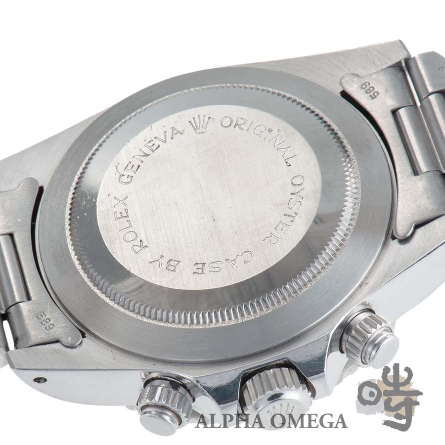 今回ご紹介する個体は、整合性の取れた前期型です。前期型の特徴としては、カレンダー窓の周囲に線が入っている点や、バーインデックスの角が面取りされている点などが挙げられます。特筆すべきは、第2時間帯を知る事が出来る12時間回転ベゼルです。初期のGMT機能を持つクロノグラフは3種類あるベゼルの中で一番人気です。さらに前期型の中でもトップクラスのコンディションを誇る「未研磨」の個体である点です。肉厚なケースには、当時の鏡面仕上げとエッジがはっきりと残っています。ブレスレットもオリジナルのRef.78360/589が装着されており、クラスプコードも1989年と、時計のシリアルとの整合性が取れています。文字盤の経年変化も少なく、発売当時の姿を留めるマニア垂涎の逸品です。夜光塗料はオリジナルのトリチウムが使用されています。ブレスレットのヨレなども見られず、フルコマである点も嬉しいポイントです。裏蓋も、検品時まで未開封であったかと推察されるほど固く、オープナーなどによる傷もほとんど見受けられません。付属品こそ無いものの、そのコンディションにおいては数年に1本見かけるかどうかの未研磨個体です。状態の良いクロノタイムを実際に使いたい方にぴったりの固体です。(文:S)