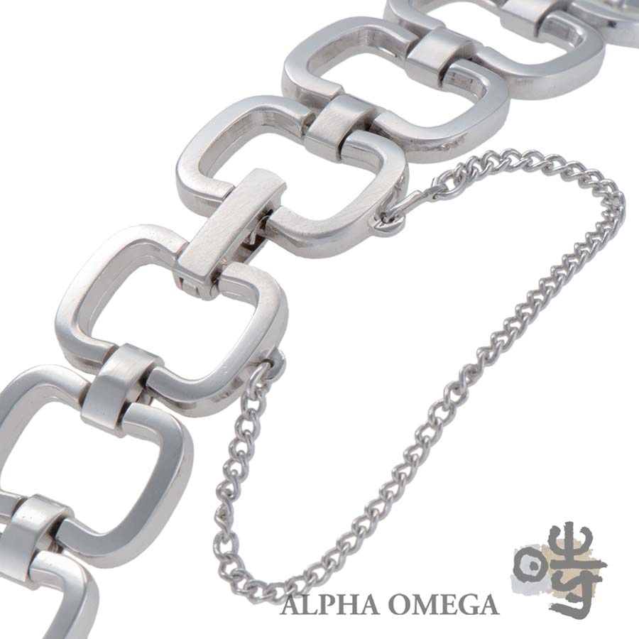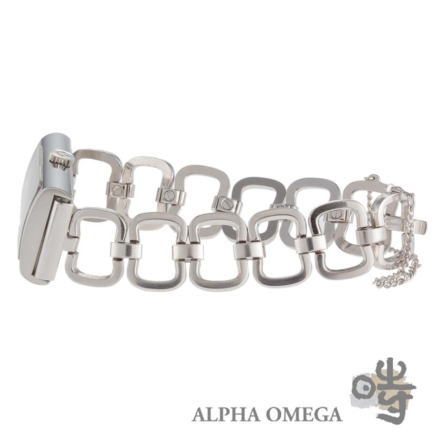 こちらは1970年代のチョコレートみたいな特殊な形状のケースです。1970年代はデザインの70年代と言われ、技術の向上から様々な形のケースが作られました。こちらのチョコレートのブロックの様なケースの形のデ・ヴィルは様々なライフスタイルに合わせて提案されたモデルの1つで、1990年代から注目されていたレトロモダンの可愛いモデルです。カルティエのようにケースの形でコレクションするのもお勧めです。アクセサリー感覚で着けられるように日本製のヴィンテージチェーンブレスレットを着装しました。年代の近いブレスレットなので1970年代の雰囲気を楽しめる組み合わせです。時計としては勿論、オーバーホールをしないでアクセサリーとして楽しむのもお勧めです。※弊社一年間保証対象外商品です