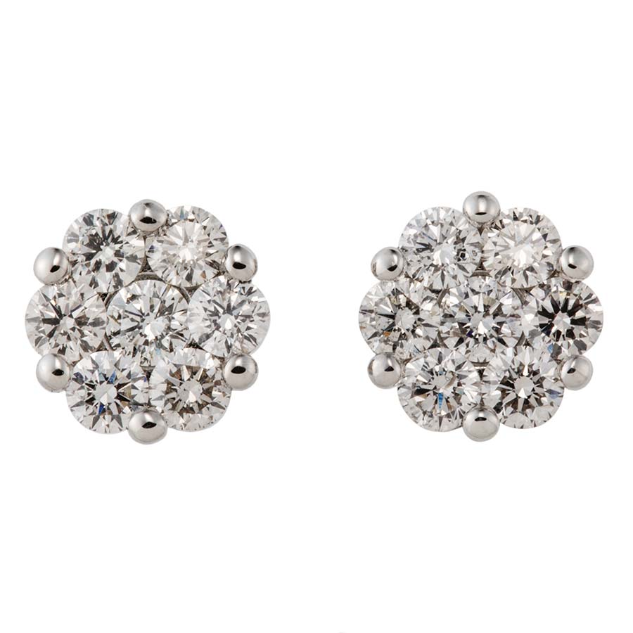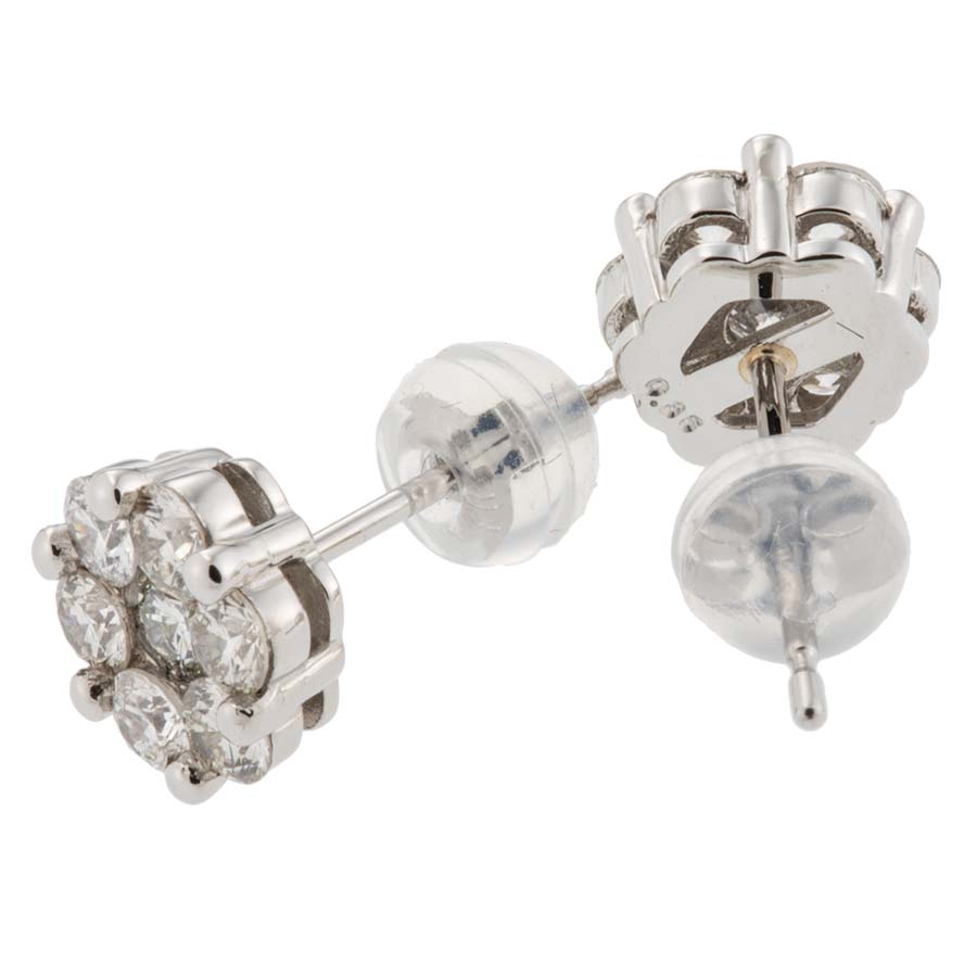 ラウンドカットのダイヤモンドを集めてお作りしたフラワーモチーフダイヤモンドピアスです。