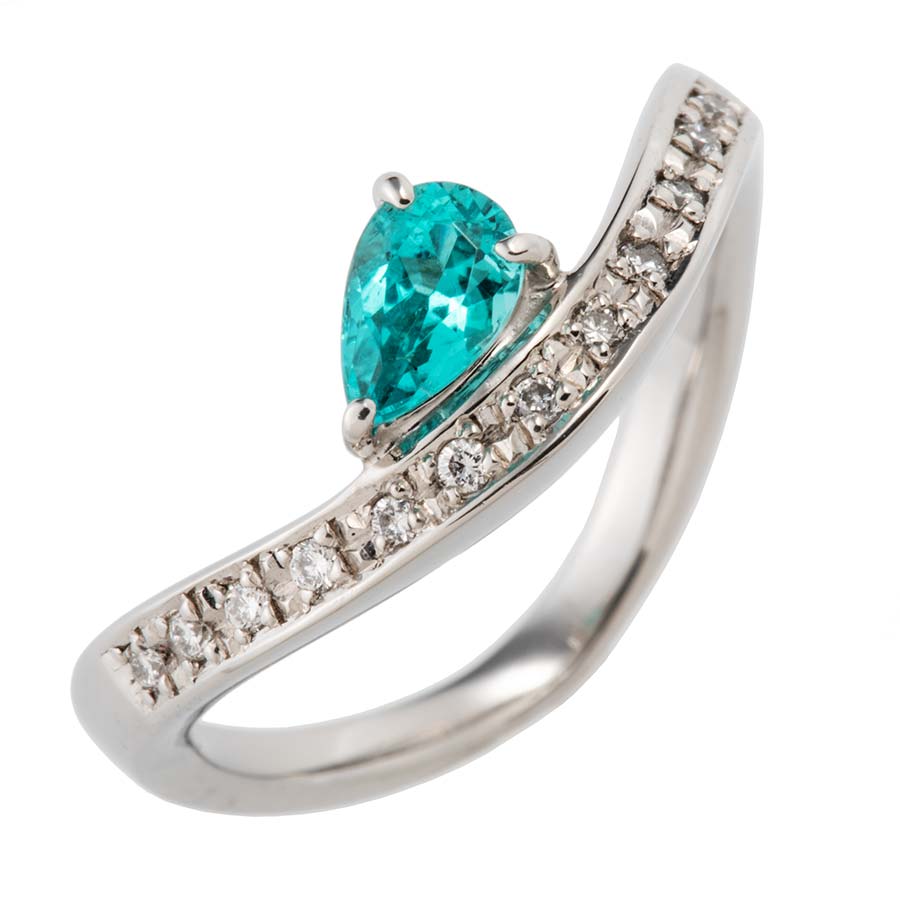 人魚の涙を思わせるようなペアシェイプのパライバトルマリンを使用したシンプルでありながらデザイン性のあるリングです。