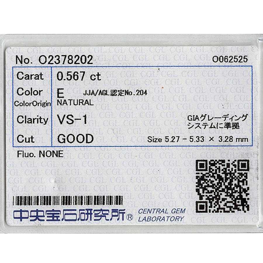 VS1-Eカラーの0.567ctの美しいダイヤモンドを使用したソリテールリングです。シンプルで普遍的なデザインでありながら存在感のあるリングです。