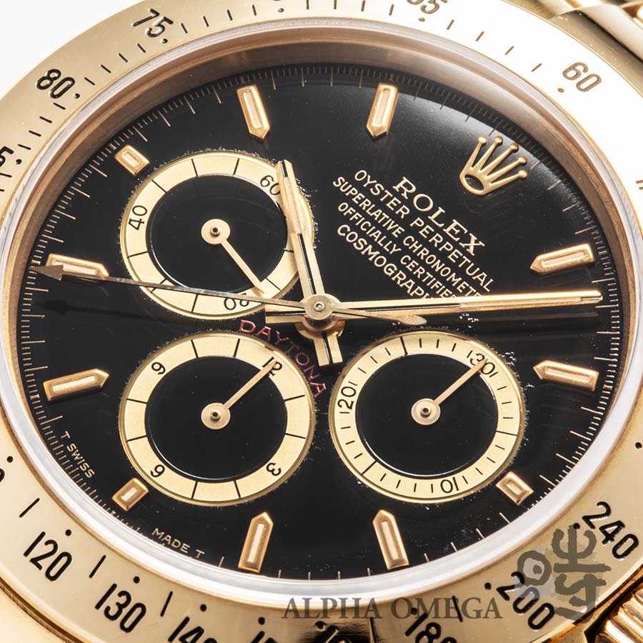 ロレックス コスモグラフ デイトナ マーク3 黒文字盤 Ref.16528 1991年 N番 シングルバックル/トリチウム/逆6/フレア ROLEX DAYTONA Ref.16523 YG MARK BLACK 3 DIAL Ca.1988 Ser.N INVERTED 6/FLARE/TRITIUM/SINGLE LOCK