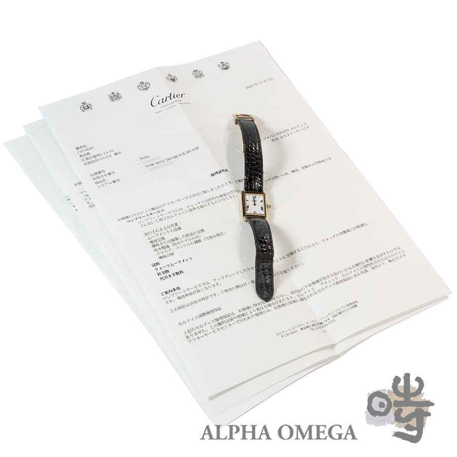 こちらはカルティエでメンテナンス済の個体となりますので、ご購入後から気持ちよくご使用いただけます。ケースの金メッキ(ヴェルメイユ)にも剥げなどは見られず、綺麗な状態を保っています。また、人気のデプロイヤントバックルが付属しており、着脱もスムーズに行えます。ダイアルにも傷や経年変化が見られない状態の良い個体です。出回りの少ない文字盤であり、希少性・状態ともに非常に優れているおすすめのモデルです。(文:S)