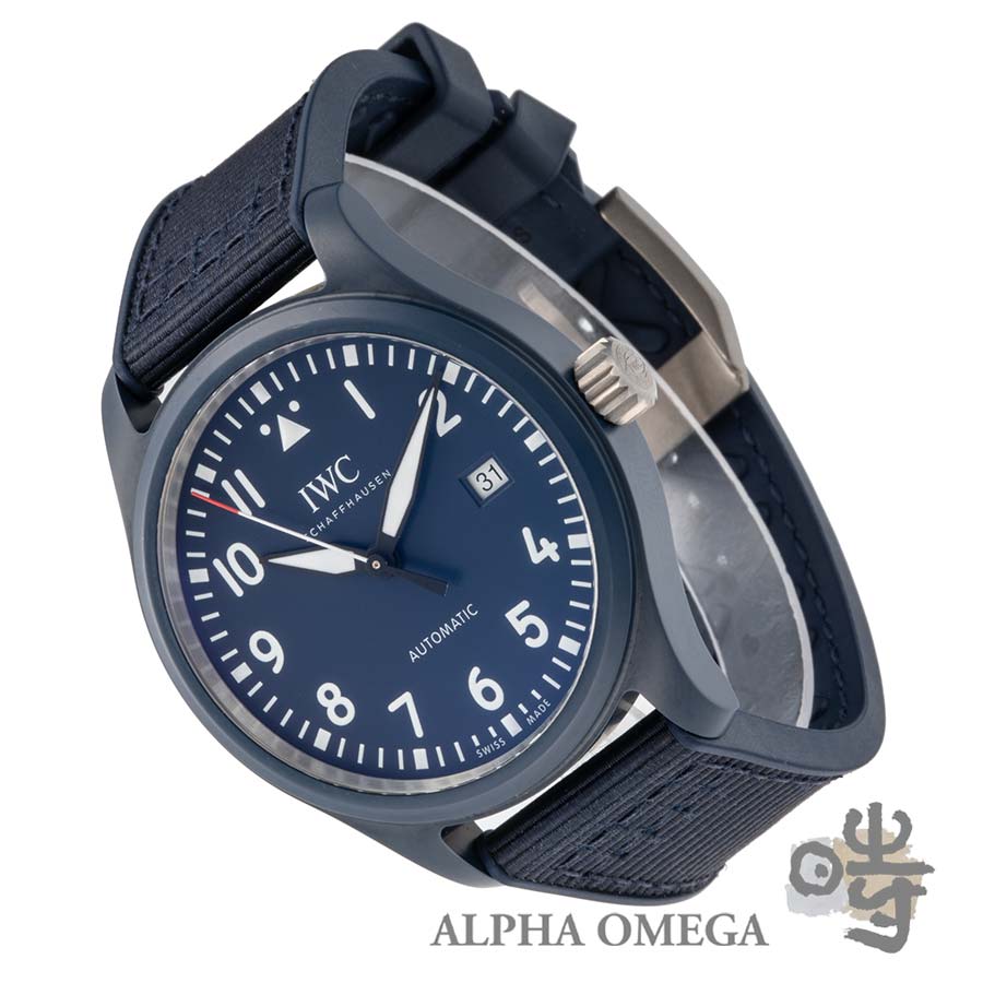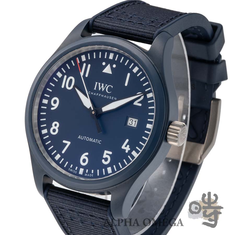 状態は、使用感の少ない未研磨の個体です。セラミックケース特有の擦り傷や色剥げなどは見られず、製造当時の美しいダークブルーカラーを楽しむことができます。ベルトの使用感も少なく、穴の広がりなどもほとんど感じられません。ベルト素材は、表面がファブリック素材で裏面がラバーとなっているため、汗ばむ夏場でも快適にご使用いただけます。パイロットウォッチのミリタリー色が強すぎると感じる方や、スタンダードでありながら少し遊び心のある時計をお探しの方にぴったりの一本です。レアモデルながら、市場最安値の「渋プライス」でご提案させて頂きます。(文:S)