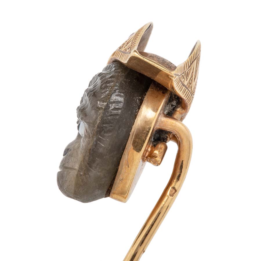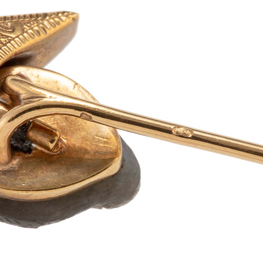 アンティーク モンキーナポレオン ピンブローチ ラブラドライト ANTIQUE MONKEY NAPOLEON PIN BROOCH WITH LABRADORITE