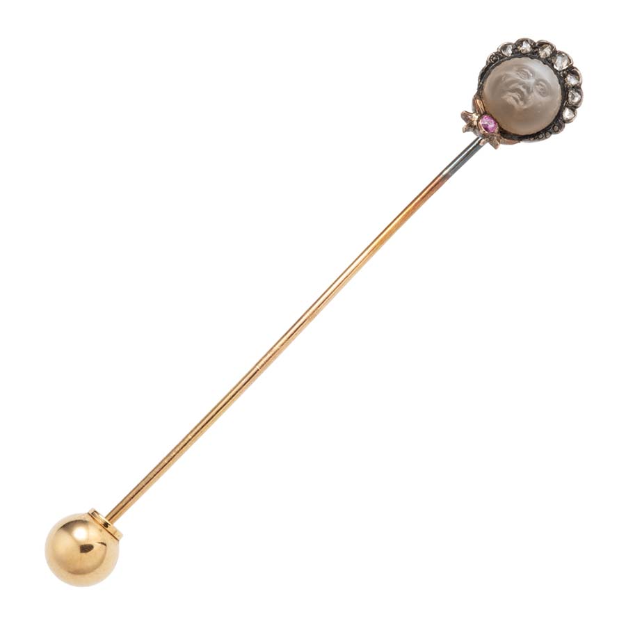 アンティーク 汗をかいたおじさん ピンブローチ ムーンストーン ANTIQUE SWEATY OLD MAN PIN BROOCH WITH MOONSTONE