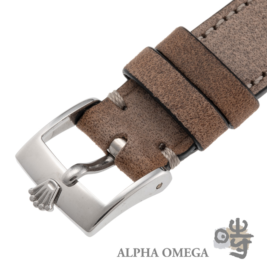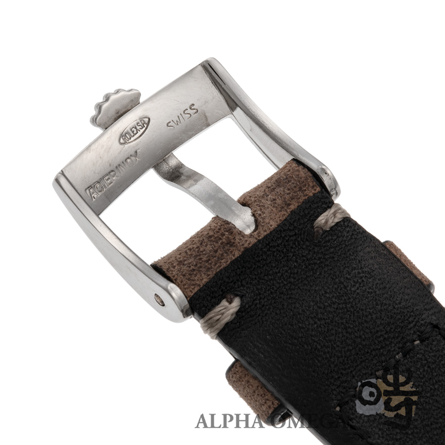 ケースは約70年前のものとは思えないほど良好なコンディションを維持しており、痩せやすいラグ足もしっかりとした太さを残しています。過去に研磨は施されているものの、ベゼルやケースのエッジは鋭く、当時の面影を鮮明に留めています。美しいブルースチールの秒針や、視差を抑えるために風防のカーブに合わせて丁寧に曲げられた長針の針先など、細部には当時の職人の丹精な仕事ぶりが光ります。ベルトにはヴィンテージの風合いを最大限に引き立てる「アキュレイトフォルム」のレザーを合わせ、さらに希少な純正尾錠も付属しています。歳月だけが作り出せる唯一無二の奇跡を愉しみたい方に心からお勧めの個体です。(文:S)