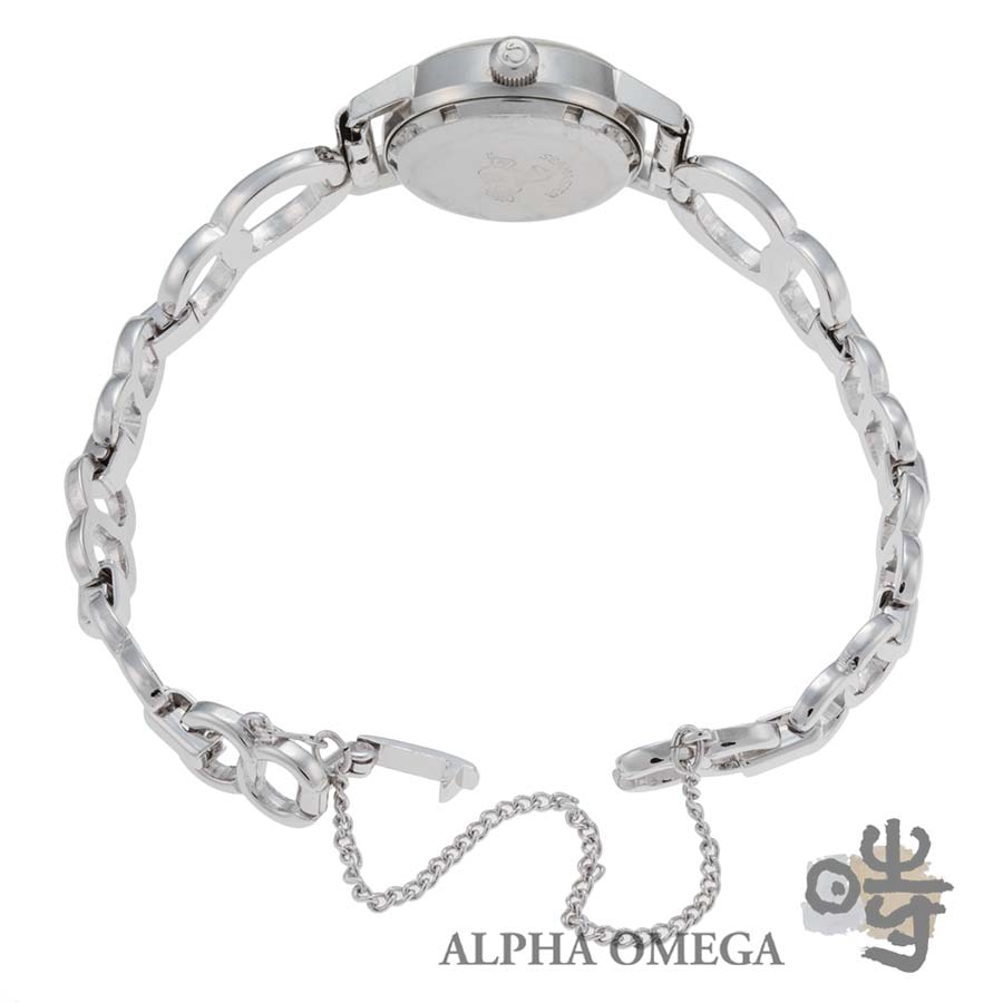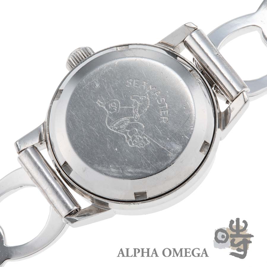 こちらはジュネーブの文字盤にシーマスターの裏蓋が組み合わされた非常に珍しい個体です。一般的にジュネーブは普及機、シーマスターは中級機というイメージを持たれがちですが、当時の作り込みには遜色がありませんでした。実際、両ライン間では多くのパーツに互換性があり、本個体のようにダイヤルに表記がなくてもシーマスターの部品が採用されていたケースは、当時の生産背景を物語る興味深いディテールといえます。EPSA製の防水ケースで21mmと小ぶりで可愛らしいサイズ感ですが、シンプルなバーインデックスとバーハンドの組み合わせにより視認性は高く、実用性もしっかりと確保されています。販売当時のシャープな形状を留める貴重な未研磨の個体で、文字盤にシミや劣化は見られず、驚くほど良好な状態を保っています。