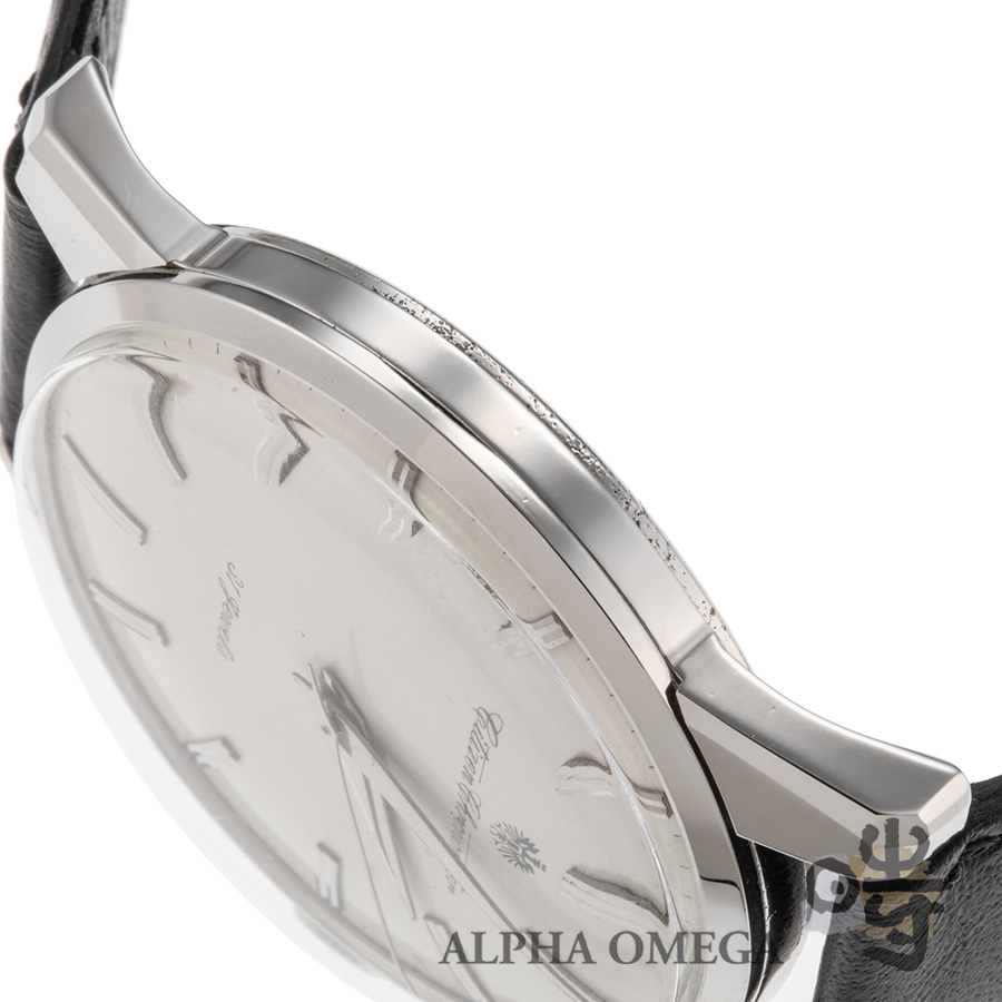 こちらは初期のマット文字盤の個体です。文字盤に経年変化は有りますが、本当に数の少ない初期文字盤の中では綺麗な個体です。部分的に艶出し程度の研磨がされていますが、ラグの平面は恐ろしく綺麗で、裏蓋のメダリオンも綺麗です。日本製の薄型ヴィンテージストラップが付きの雰囲気「ばつぐん」の個体です。