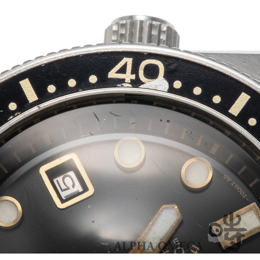 1969年製という半世紀以上前のモデルでありながら、心臓部には毎時36,000振動(10振動)を誇るハイビートムーブメント「Cal.6159A」を搭載。これは当時のグランドセイコー用に開発された最高峰の機械をダイバーズ用に改良したもので、国産ダイバー初のプロユースモデルとして誕生しました。1960年代、世界の並み居る名門メーカーを精度で凌駕し、時代の先頭を走っていたセイコーが、その威信をかけて作り上げた傑作中の傑作です。