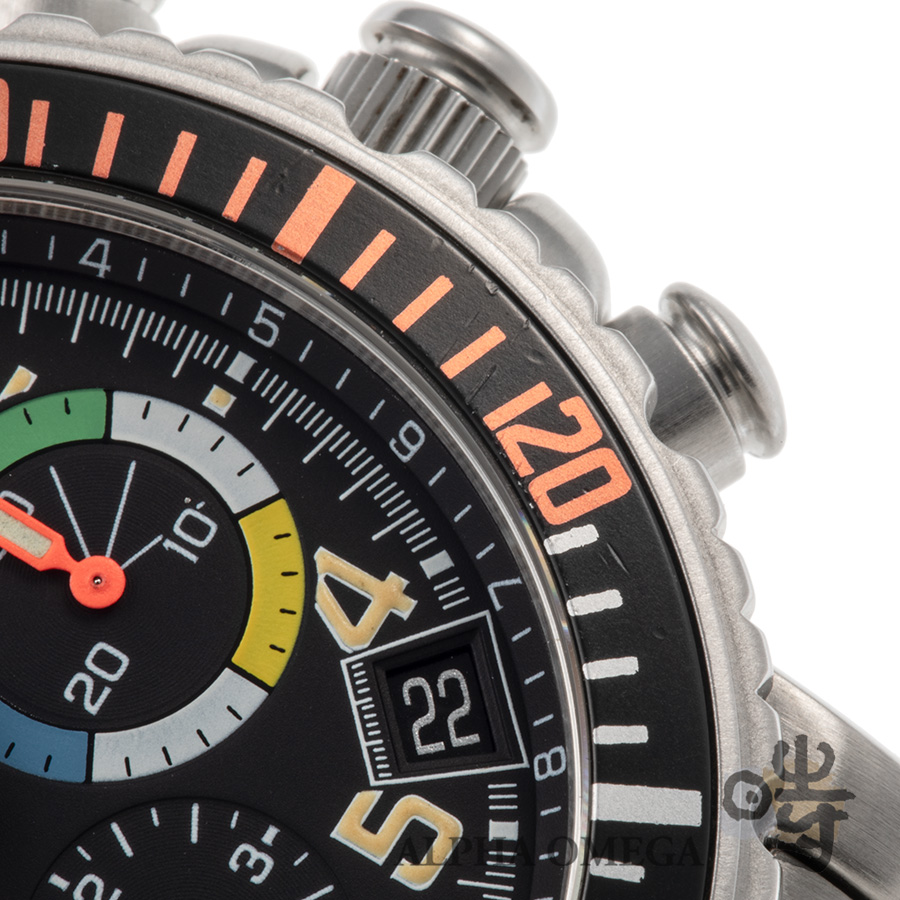 1990年代後半に誕生したこのモデルは、実はフランス空軍からの「戦闘機で実戦使用できるパイロットウォッチを」という切実な要請から生まれました。その名は1934年のアメリカンズカップ優勝船「レインボー号」に由来しますが、その優雅な名に反して、中身は伝説のムーブメント「エル・プリメロ」にフライバック機能を積み込んだ、正真正銘のプロフェッショナル仕様です。グローブをはめたままでも操作しやすいよう、あえてねじ込み式を廃したプッシャーなど、道具としての徹底した実用美もこの時計が名作たる所以だと思います。