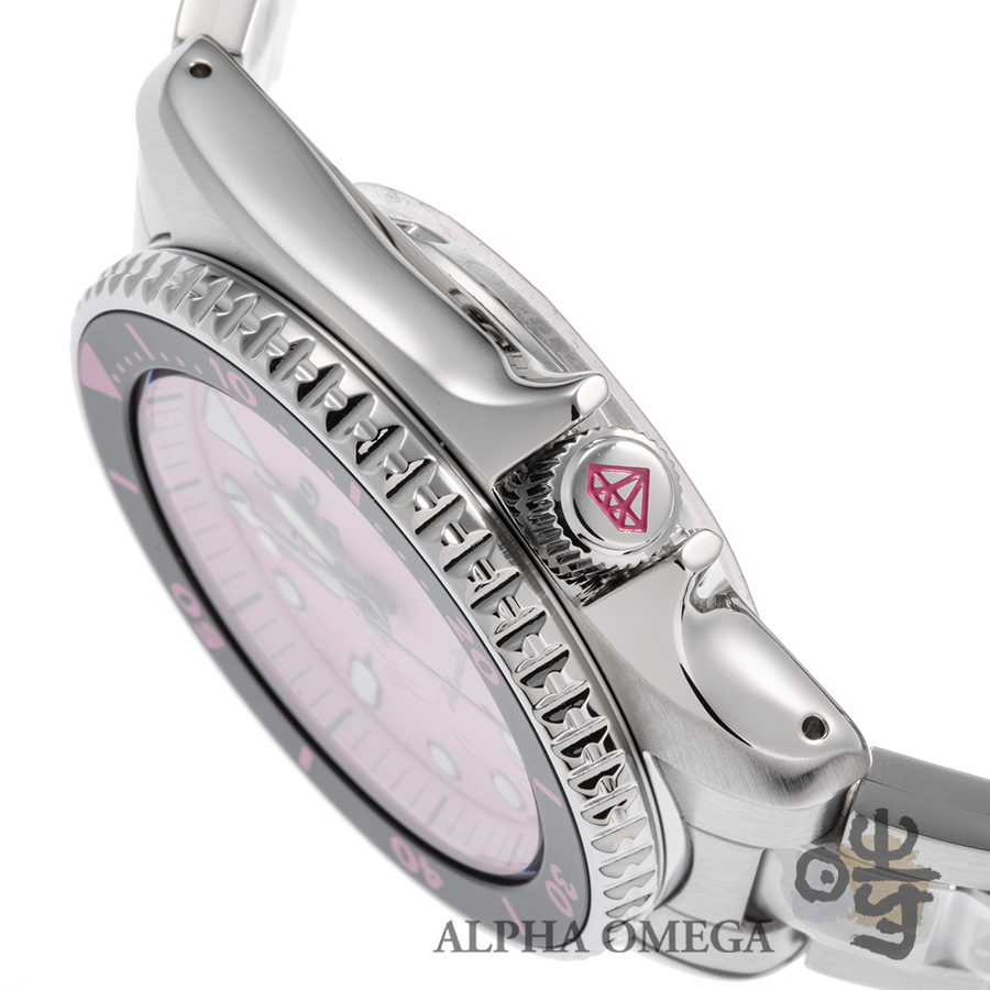 比較的硬派なセイコーがここまで振り切ったポップなカラーリングに挑んだ姿は、個人的にはチューダーのフラミンゴピンクのようなアイコニックさを感じさせ、今のポップカルチャーとも自然体で馴染む抜群の相性の良さを誇っています。新品は既に完売で、こちらは保護シールなども剥がしていない未使用品となっております。日本国内は999本限定で、日本の総人口から考えると、10万人に1人しか所有できない珍しい時計です。ピンクで遊べる時計は少ないのでお探し方は是非ご検討くださいませ。渋プライスでパパよろしく!※ケースの保護フィルムのみ撮影の際に一度外しております。(文:S)