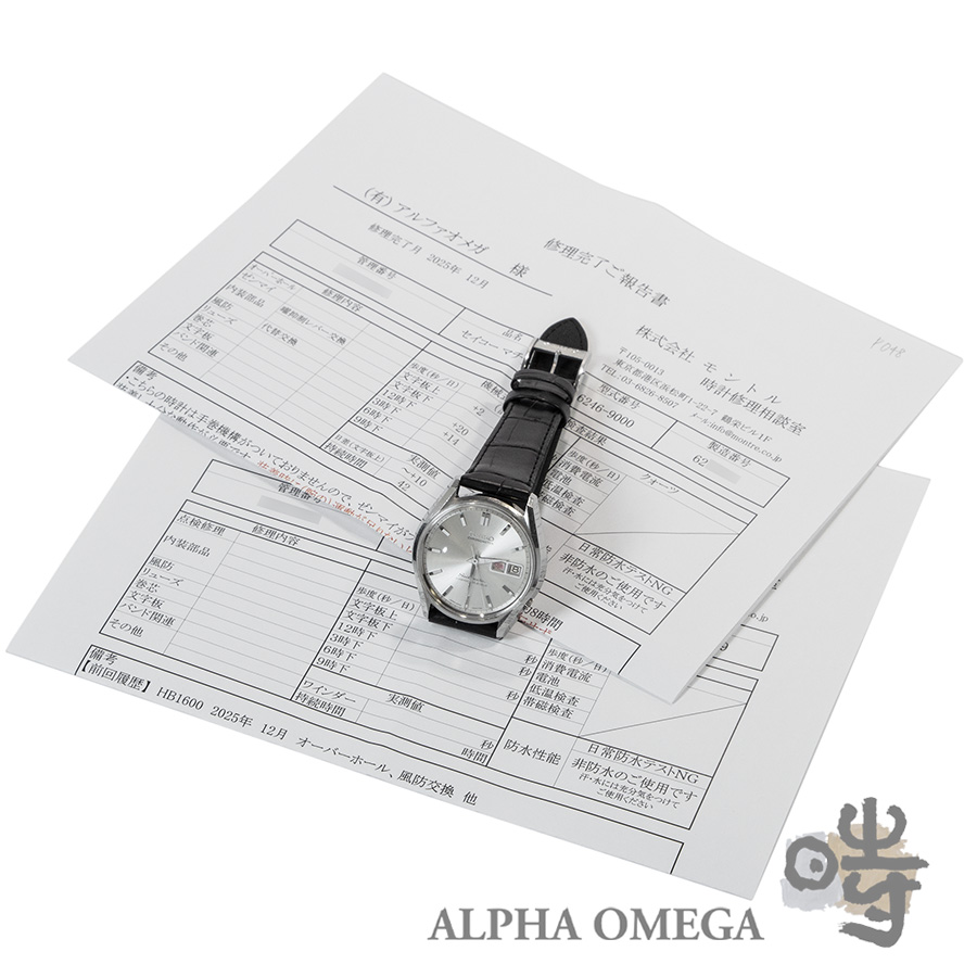 文字盤はシミなどがほぼ見受けられない素晴らしい状態です。ケースは当時のエッジが鮮明に残るノンポリッシュ(未研磨)。自動巻きモデル特有のあの愛らしいフォルムが、当時のままの姿で残っているのは、生産本数の少なさを考えても正に奇跡的です。ハック機能、カレンダー早送りと普段遣いでも重宝する機能がそろっています。OH済ですので気持ちよく使って頂ける個体です。(文:S)