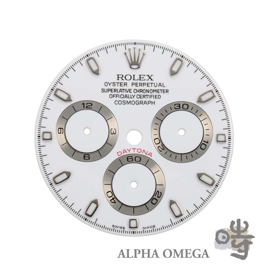 116520の白文字盤と黒文字盤の現在の価格差は、年式・状態によって前後いたしますが30-50万程度変わってくると思います。年々相場が上がっていく中、ロレックス正規OH金額程度で白文字盤を手に入れられるのはお買い得だと思います。流行に合わせて文字盤を載せ替えるのも良し、針は消耗品でもるので修理の交換パーツとして保管するのも良いと思います。文字盤のクラックや経年変化も見られない状態の良いパーツです。(文:S)