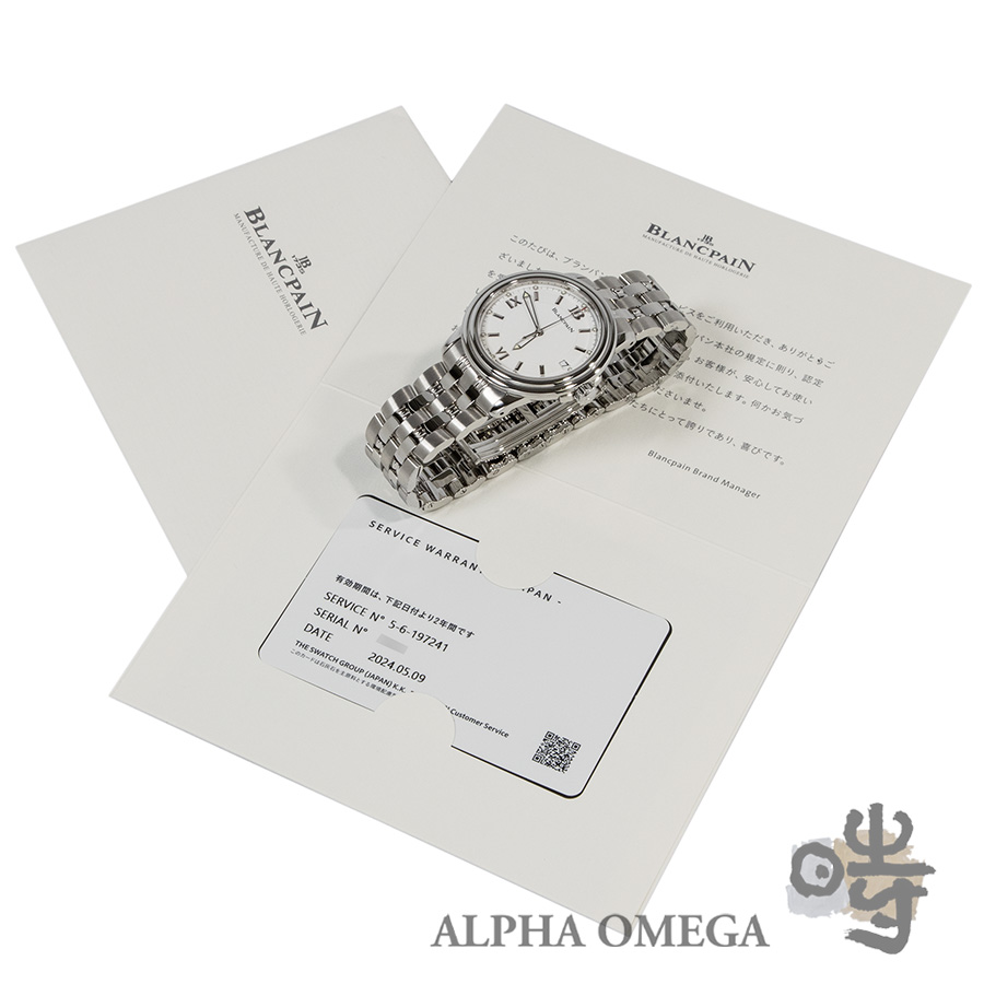 こちらはブレスレットタイプですので、時期を選ばず通年使えるポイントも嬉しい点です。気になる状態ですが、2024年5月にメーカーにてオーバーホールを終えており、内部・外装ともにメーカー仕上げ済です。メンテナンス時に傷つきやすい針なども問題なく、まさに「おろしたて」のような気持ちよさでお使い頂けます。50万円台のドレスウォッチの中で、ブランド背景、個体のメンテナンス条件を兼ね備えた個体は中々無いと思います。機械式時計にこだわるブランパンの熱量を楽しんで頂けるオススメの個体です。(文:S)