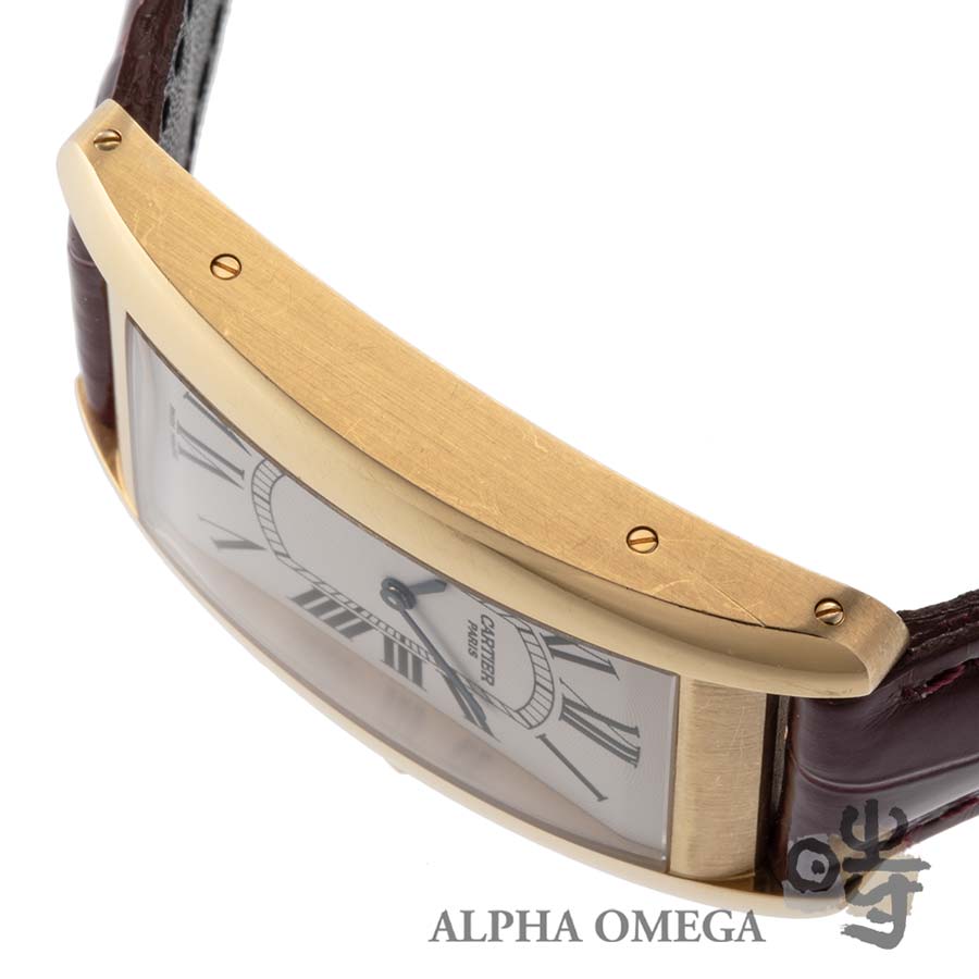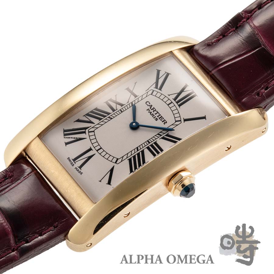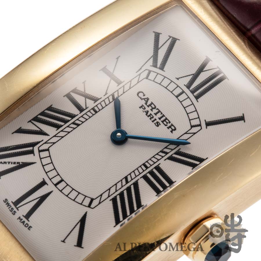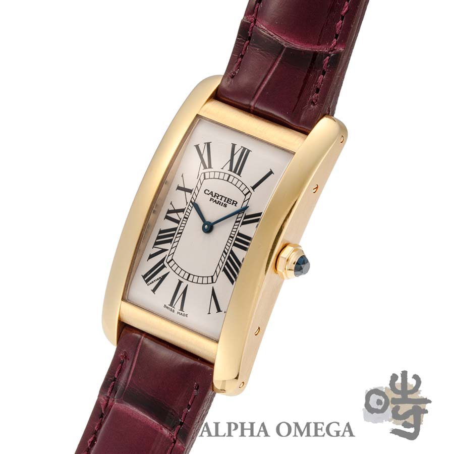 こちらは製造が終了した貴重なクラシックデザインのコレクション、CPCP(コレクション プリヴェ カルティエ パリ)のタンクアメリカンです。CPCPは1999年から始まった、カルティエを高級時計メーカーとして指針づけた特別なコレクションで、「プリヴェ」はフランス語でプライベートを意味します。カルティエの芸術的ともいえる装飾品としての美しさや優雅さを、信頼できる有名メーカーのムーブメントと融合させた本格的な機械式時計シリーズとして知られています。