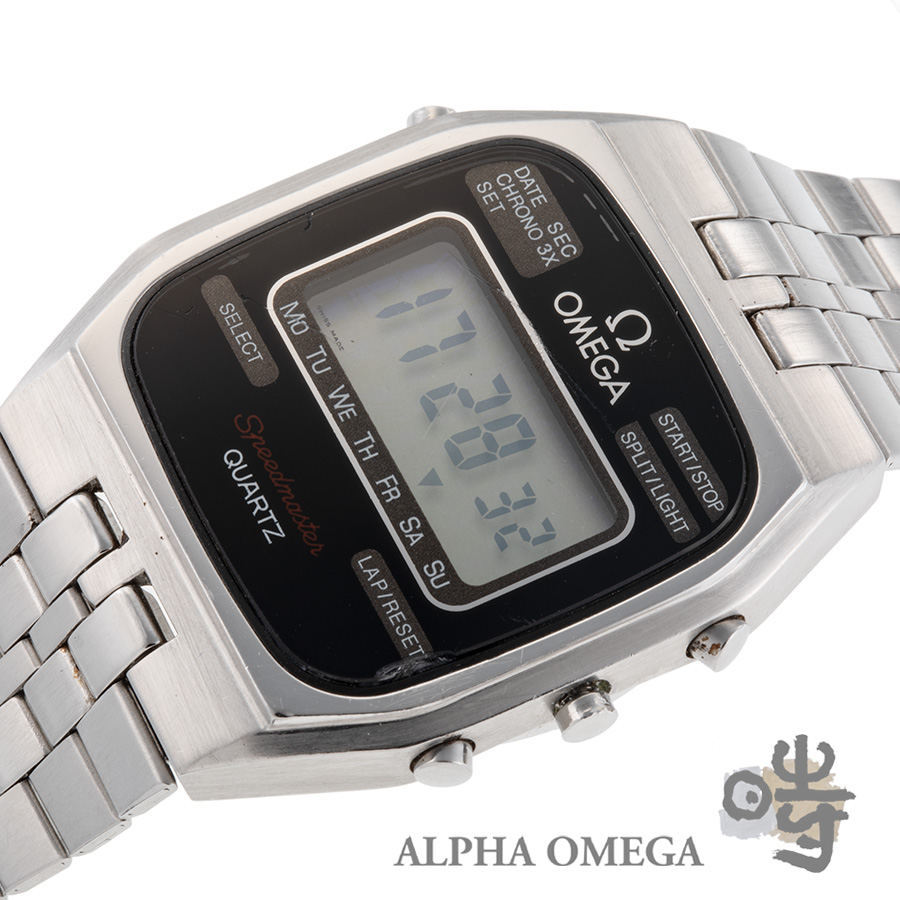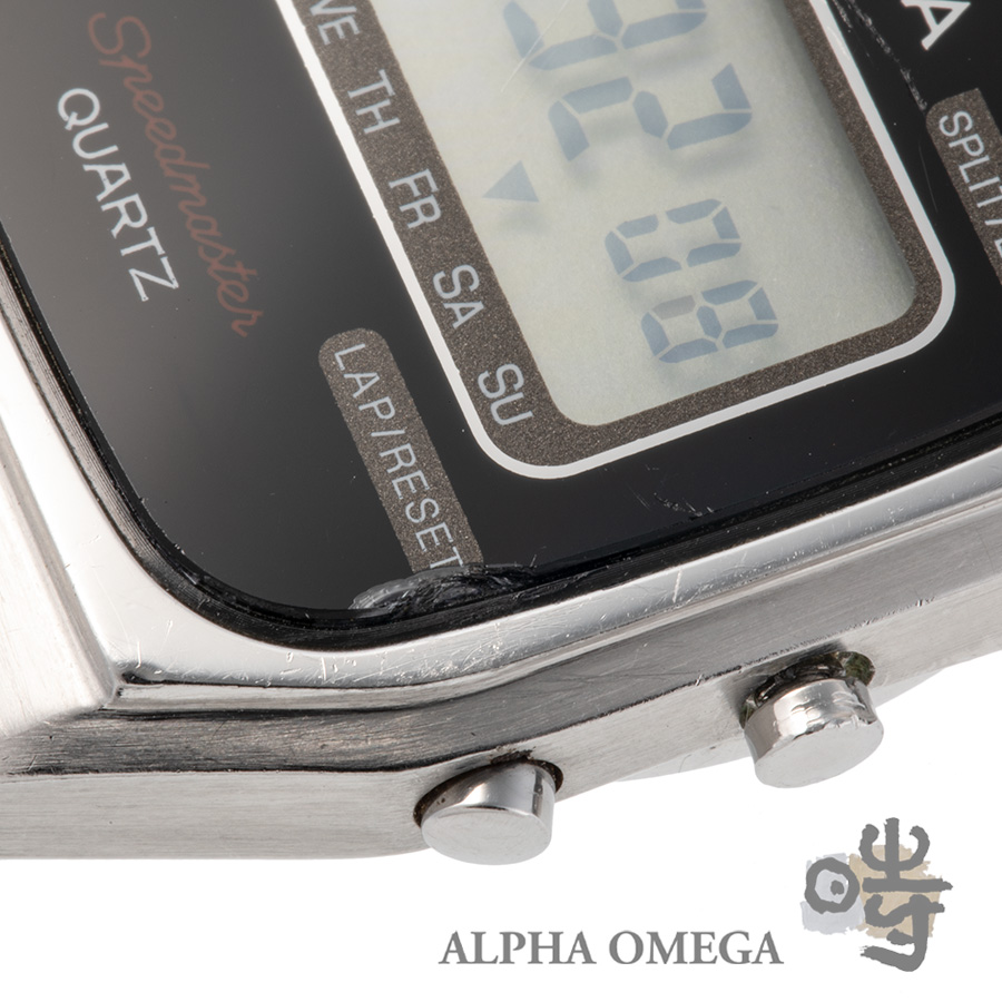 こちらは1970年代のわずかな期間に作られたスピードマスターデジタルクォーツです。その歴史はクォーツショック後の1974年には音叉時計のスピードソニックに始まり、1977年にはクォーツキャリバーを搭載したスピードマスターシリーズが登場しました。
