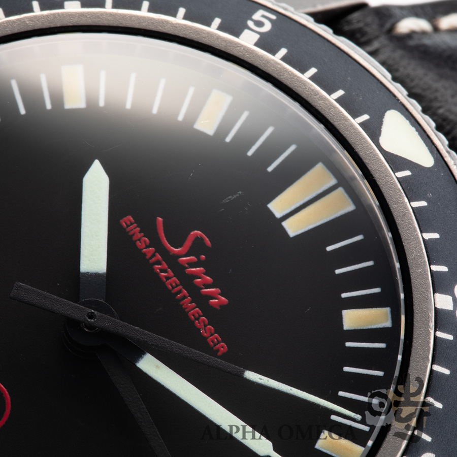 EZM1はドイツ連邦税関の特殊部隊(ZUZ)向けに1997年設計されました。当初は25本のみとごく少数のロットでZUZに納品されました。極限の緊張感の中で一瞬の視認性を高めるため、ダイアルは最小限のシンプルなデザインとなっています。黒の地板に白のミニッツマーカー、ブランド名や日付も視認の妨げにならないように濃い赤色で表記されています。そしてキャリバーは、ドイツ軍が絶大な信頼を寄せた名機「レマニア Cal.5100」を搭載しています。センターに配置されたクロノ針により、経過時間を瞬時に把握出来るように設計されています。この時間を把握するのに最適なキャリバーである点が、数多くのドイツ軍時計がレマニアのCal.5100を採用する所以です。EZM1はその後、レマニアがスウォッチグループ以外のメーカーにムーブメントを販売しない方針を取り、生産が終了します。