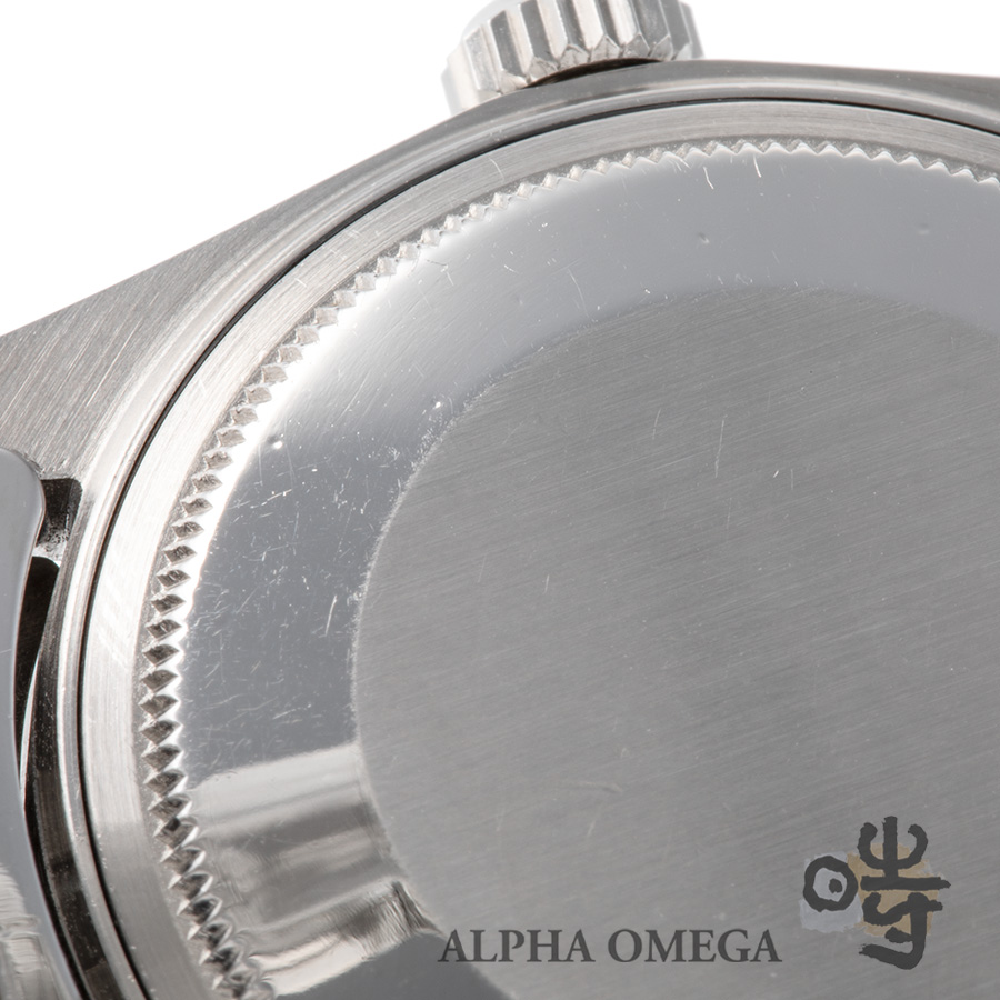 カラーダイヤルは外周などから経年変化が始まりやすいですが、こちらは大きな経年変化が殆ど見られず、針・インデックス共に夜光の欠けなども見られません。ブレスレットも良好です。ケースは若干研磨感がありますが、ケース・文字盤・ブレスレットの年式が一致したお勧めの個体です。(文:S)